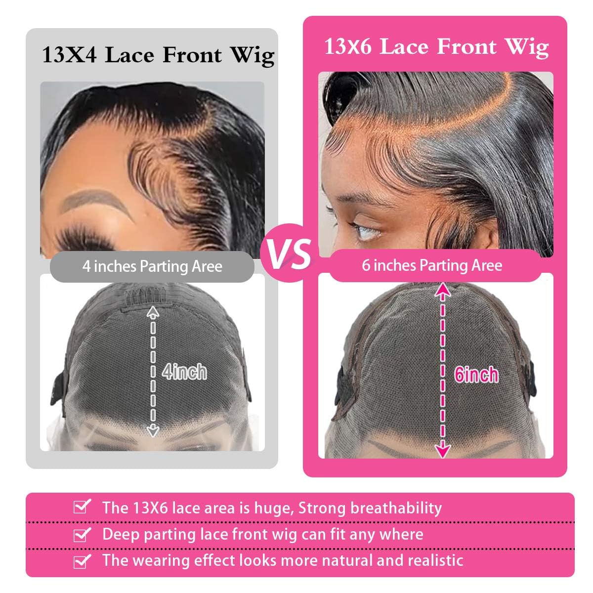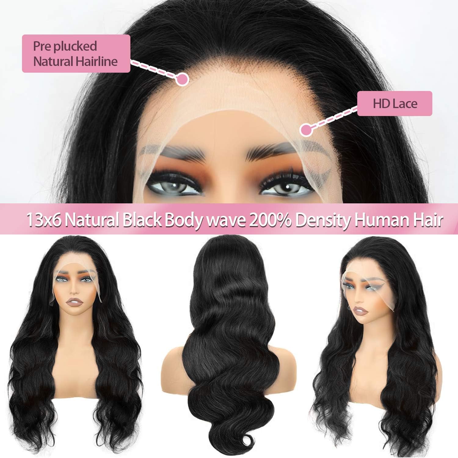- Frontal Wigs Human Hair Quality: 13x6 200% density lace front wigs human hair side part and free part natural hairline.ear to ear 13x6 large lace size can make high ponytail bun, enough baby hair around transparent swiss lace suitable for most skins.