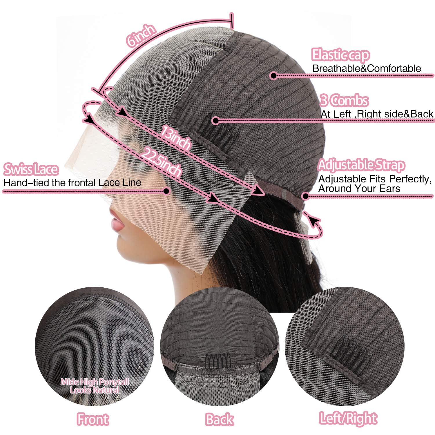 - Lace Front Wigs Cap Process: body wave front lace wigs human hair pre plucked, 30 inches, medium cap size (21.5 - 22.5 Inch) with adjustable straps and 3 combs, perfect combination with your head, more comfortable to wear.