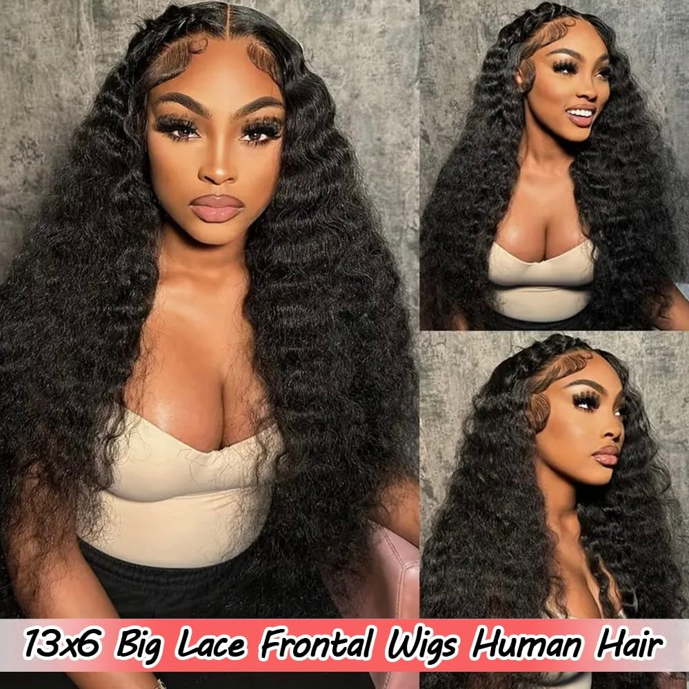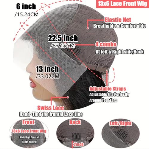 - 13x6 Frontal Wigs Human Hair Cap Size: Deep Wave Wig Average Cap Size (21.5-22.5 Inch) with Adjustable Straps and 4 Combs; Has Glueless Straps Fit On Small, Medium And Big Head Friendly; Can Be Side Part, Middle Part, High Ponytail& Bun